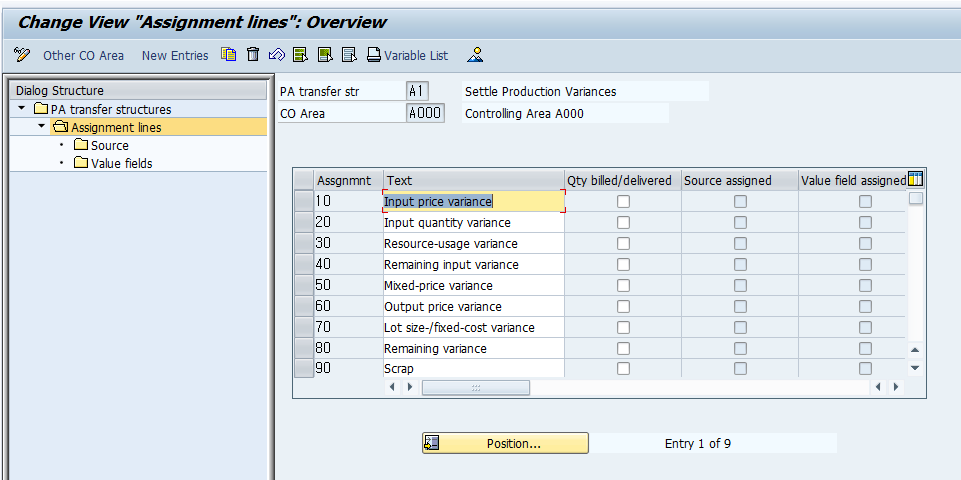 | Assignment | Text | Qty billed/delivered | Source assigned | Value field assigned |