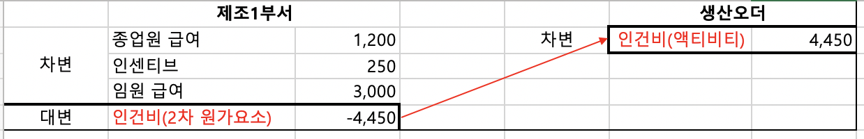 또한, 아래 이미지와 같이 Activity allocation을 수행되는데에도 활용되어 생산 오더로 인건비를 할당하는 데 사용됩니다.