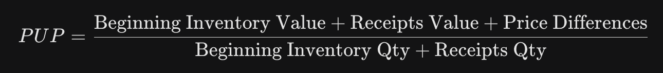 실제 원가 계산의 최종 목적지는 PUP입니다. 이는 해당 기간의 실제 발생 비용을 수량으로 나눈 가중 평균 단가입니다.