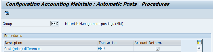 PRD 거래 키는 자재 이동과 송장에 대해 표준원가(Standard price)로 평가되는 자재에 사용되며, 이 표준원가와 다른 값을 가질 때 적용됩니다.